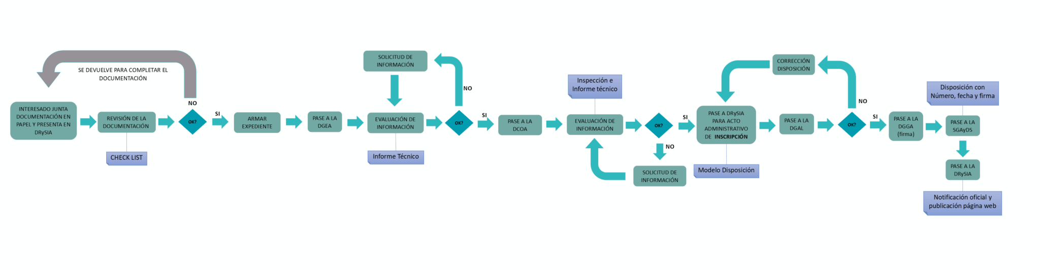 La imagen a continuación, muestra el procedimiento administrativo que se realiza en la secretaría para otorgar la inscripción en el registro: